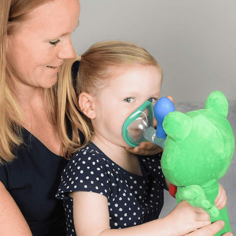 A máscara permite a realização da autoinsuflação pela boca e a bomba integrada permite que os pais ajudem a criança apertando a barriga do peluche. Graças ao seu design, o dispositivo é considerado um brinquedo divertido, permitindo um tratamento bem-sucedido mesmo em crianças pequenas.